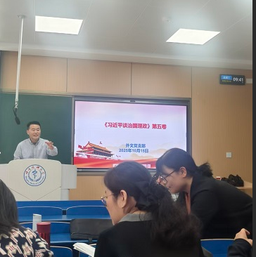 10月15日,外文党支部组织全体党员在理论教学楼114教室开展主题党日活动,集体学习《习近平谈治国理政》第五卷图书目录部分,支部书记郭书法领学。