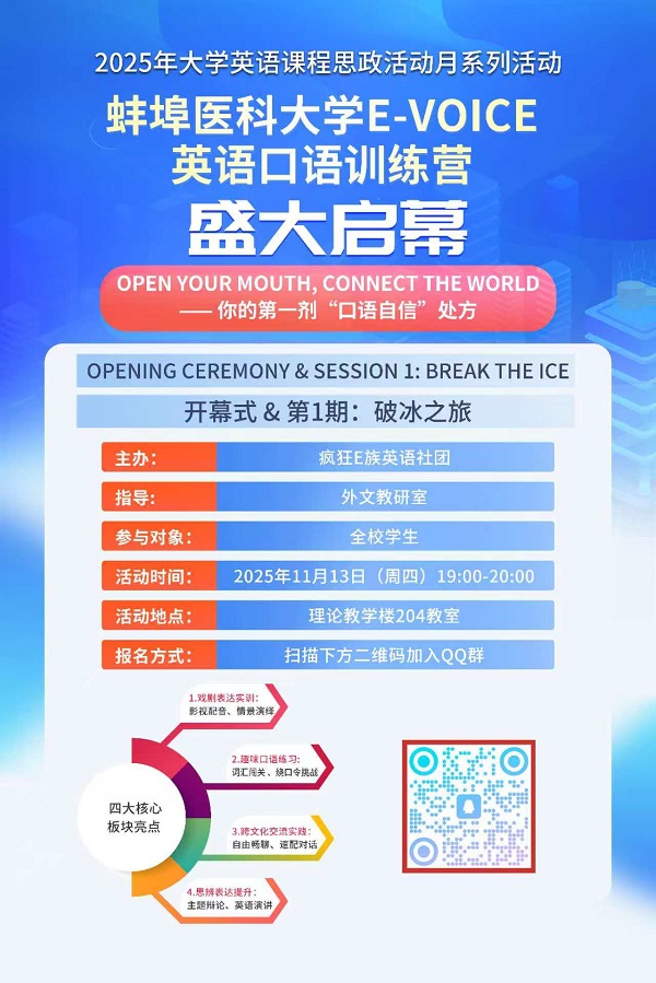 欢迎访问:蚌埠医科大学“新医科”大学外语教育教学平台