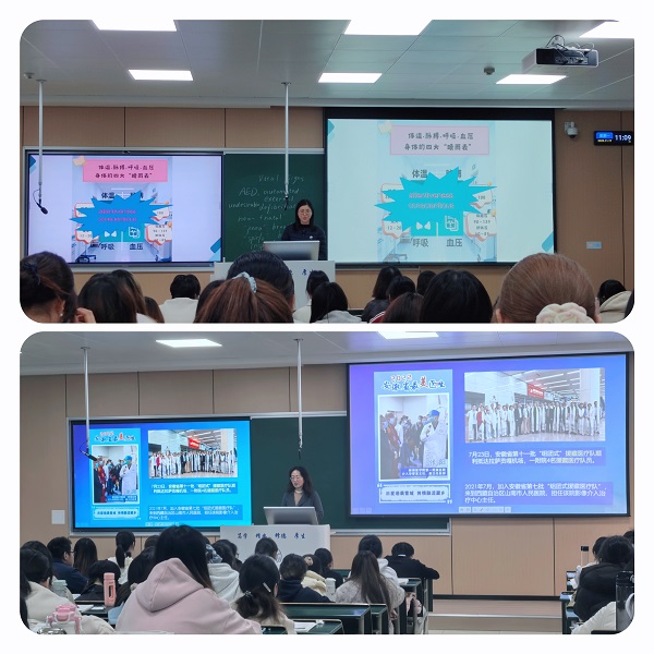 11月17日和24日,人文与健康学院外文教研室在理论教学楼成功举办了两场《护理英语》课程思政示范公开课。示范公开课以“Vital Signs(生命体征)”和“Nutrition and Diet(营养与饮食)”两大护理核心为主题,通过曹静、姚蓓两位授课教师的创新实践,生动展现了通识课程与思政教育深度融合的教学艺术,人文与健康学院及护理学院部分教师参加了现场观摩。