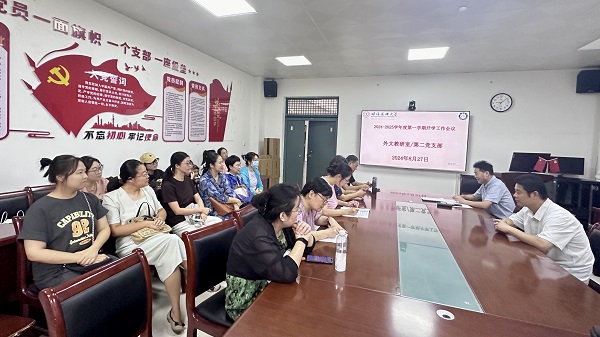 8月27日,外文教研室在学院办公室召开2024-2025学年度第一学期首次教学会议,外文教研室主任郭书法主持会议。教研室回顾了暑假期间教研室教师培训、组织比赛、学生获奖和校级质量工程申报等事宜。
