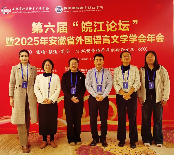 11月14日至16日,由安徽省外国语言文学学会主办的第六届"皖江论坛"暨2025年省外文学会年会在合肥隆重召开。本次盛会汇聚了省内外百余所高校的外语教育专家、外语学科负责人及一线教师代表共计300余人,围绕"重构·融通·复合:AI赋能外语学科创新与发展"这一时代命题展开深度研讨,共同绘制智能时代外语教育新图景。我校人文与健康学院外文教学团队应邀参会并参与多个分论坛的交流发言。