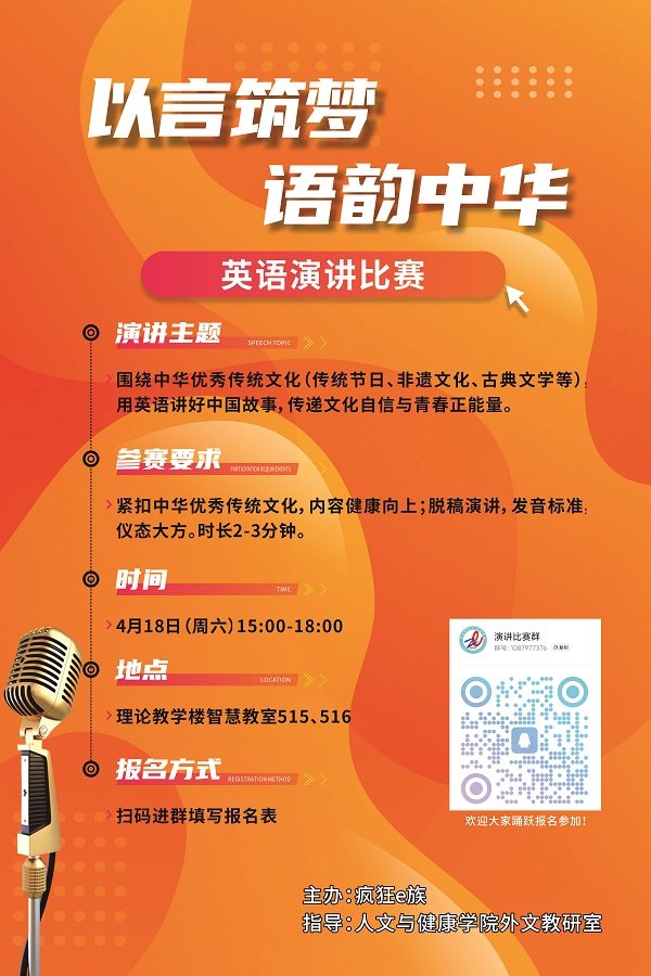 为帮助学生精准把握本年度全国大学生英语竞赛(NECCS)题型、系统提升英语综合素养与应试能力,外文党支部开展竞赛辅导讲座活动,活动吸引全校200余名同学到场聆听。支部陈晓明副教授以幽默风趣的授课风格和扎实的专业素养,将应试技巧讲解得生动易懂。一个多小时的讲座内容充实、重点突出、针对性强,同学们认真聆听、细致记录,积极梳理备考思路。讲座结束后,大家纷纷表示受益匪浅,不仅系统掌握了各类题型的解题技巧,更明确了备考方向、增强了竞赛信心。为丰富校园文化生活,营造浓厚英语学习氛围,搭建英语表达与文化传播的双向平台,展现当代大学生青春风采与语言魅力,外文党支部指导我校“疯狂e族”社团开展“以言筑梦,语韵中华”英语演讲比赛。活动围绕中国传统文化展开,涵盖传统节日、非遗文化、中华美德、古典文学、民族特色、文化传承等内容,传递文化自信与青春正能量,用英语讲好中国故事。